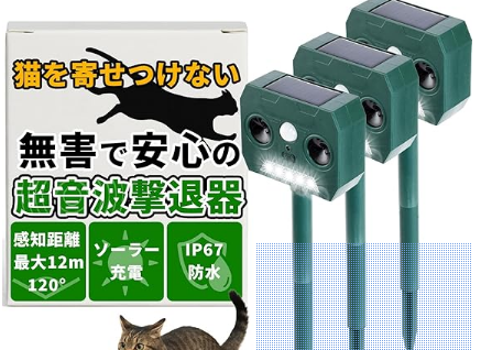 Amazon | 『ネズミ,猫,熊を寄せつけない!』 動物撃退器 猫よけ (ソーラー自動充電式) 【最大12m/120°の広範囲センサー】 自動発光+超音波で害獣撃退 (3個セット) | 害獣・害虫対策器