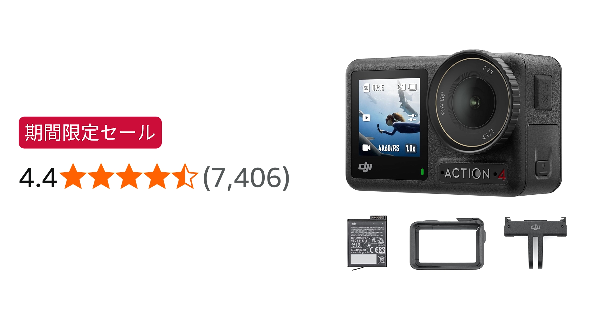 価格的には年末セールより安価です。新製品のAction6が、相変わらず不安定な部分を残しているのに対し、Action4は安定しています。Action5も良いですが、何より価格が安価で非有名ブランドに近い価格設定です。DJIという安心感もありますし、ネット上に情報が多いのも使いやすい感じがしますので、お勧めです。