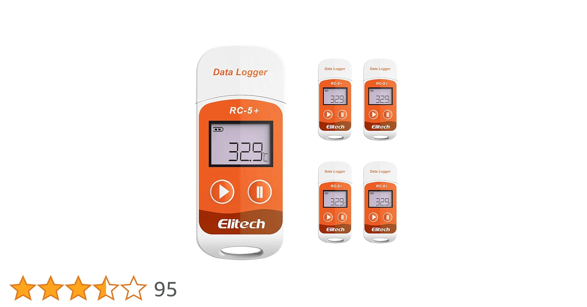 Elitech 温度記録計 RC-5+ USB一体型LCD表示 32000ポイント 簡解析できるデータロガー 温度警告 レポート自動生成、解析できるデータロガー (5セット)