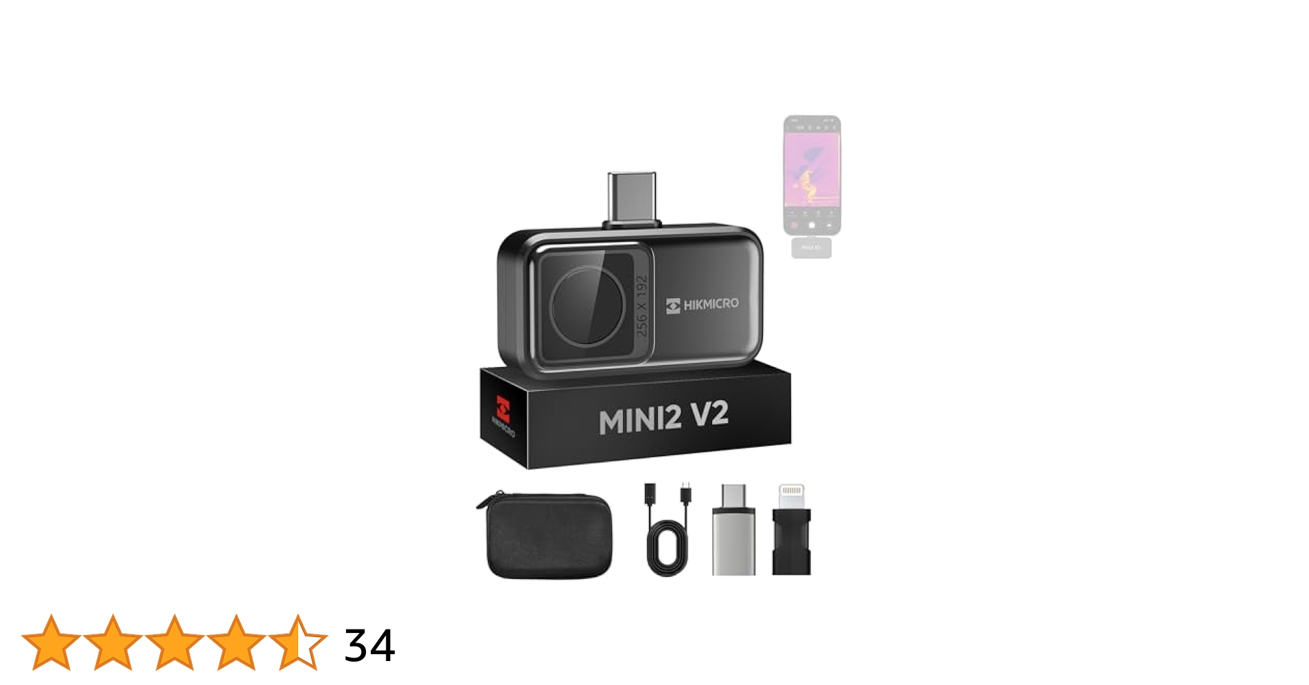 HIKMICRO Mini2 V2 サーモグラフィー サーマルカメラ、スマホ用 iOS/Android対応、256x192 赤外線解像度、SuperIR技術、50°広角、ビデオ録画対応、25Hzフレームレート、バッテリー不要、スマホ/タブレット/PC用、USB-C/Lightningポート